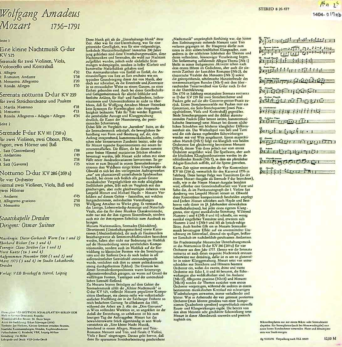 商品コード:1404-017nb[ETERNA] O.スウィトナー/ モーツァルト:セレナーデ集/アイネ・クライネ, セレナータ・ノットゥルナ, 4つの田園舞曲, セレナーデ8番