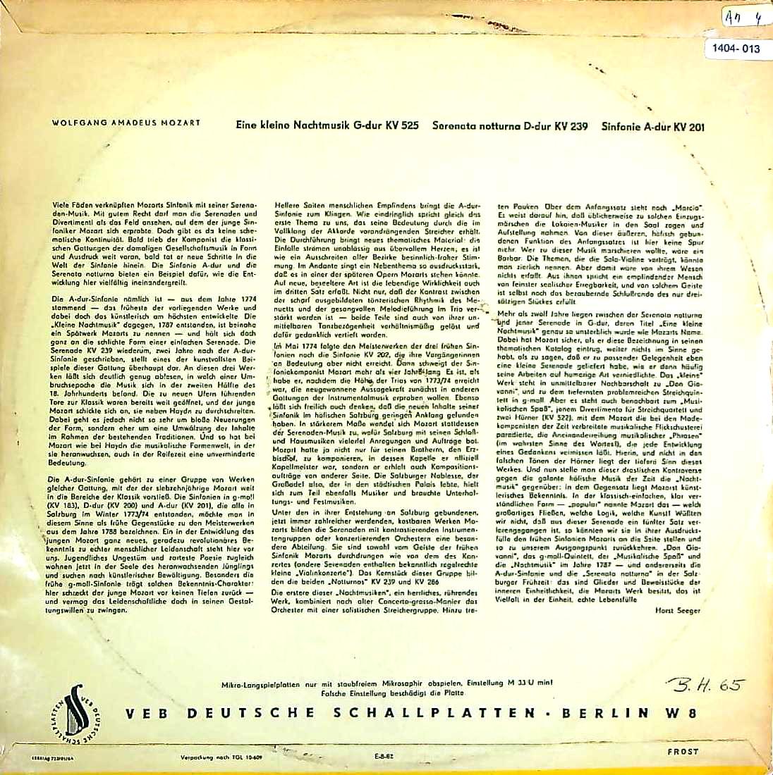 商品コード:1404-013n[ETERNA] O.スウィトナー/ モーツァルト:アイネ・クライネK.525, セレナータ・ノットゥルナK.239 , 交響曲29番K.201