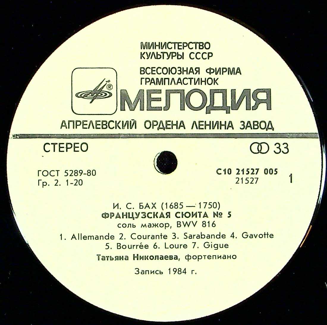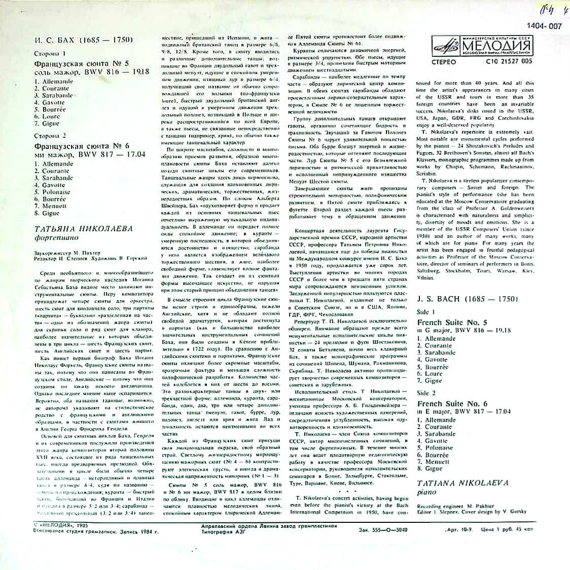 商品コード:1404-007n[MELODIYA] T.ニコラーエワ(pf) / バッハ:フランス組曲全集vol.3/フランス組曲5番BWV.816 , フランス組曲6番BWV.817