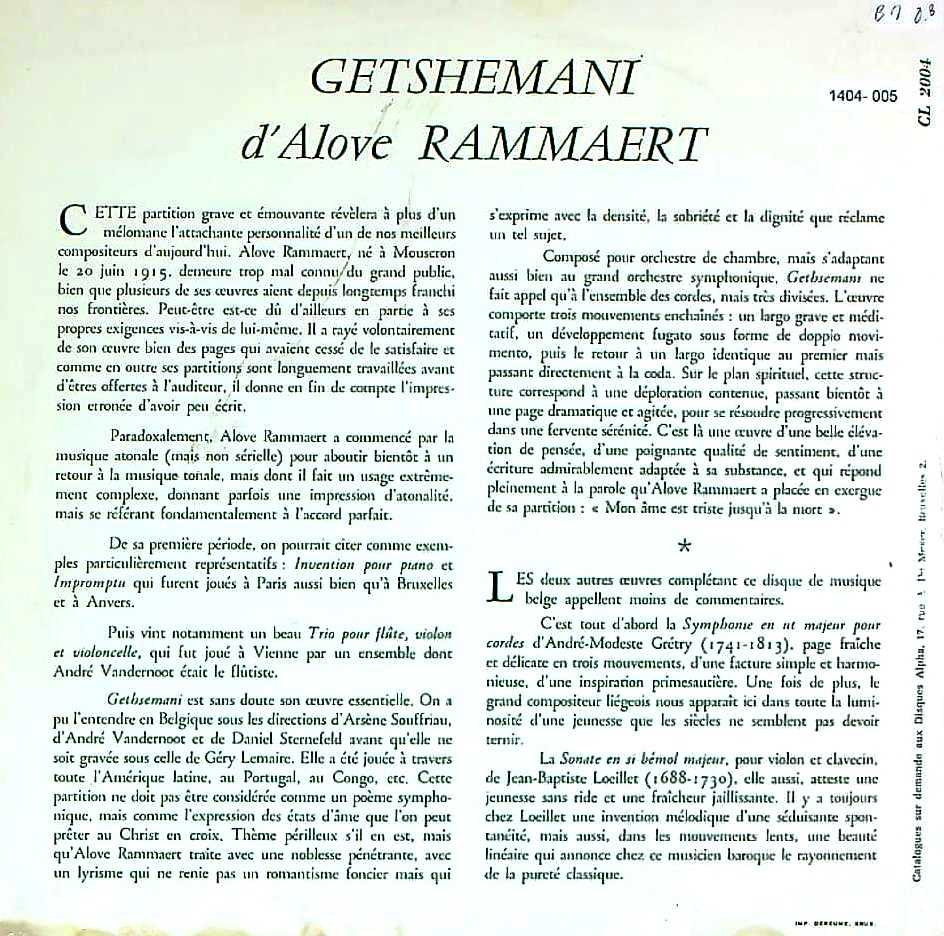 商品コード:1404-005[ALPHA] G.ルメール/ グレトリ:サンフォニー ハ長調, ルイエ:Vnソナタ 変ロ長調, ゲッツェマニー:私は死ぬまで悲しい