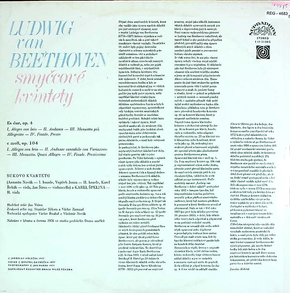 商品コード:REG-4683t[SUPRAPHON] スークQt. K.シュペリナ(va) / ベートーヴェン:弦楽五重奏曲Op.4, Op.104