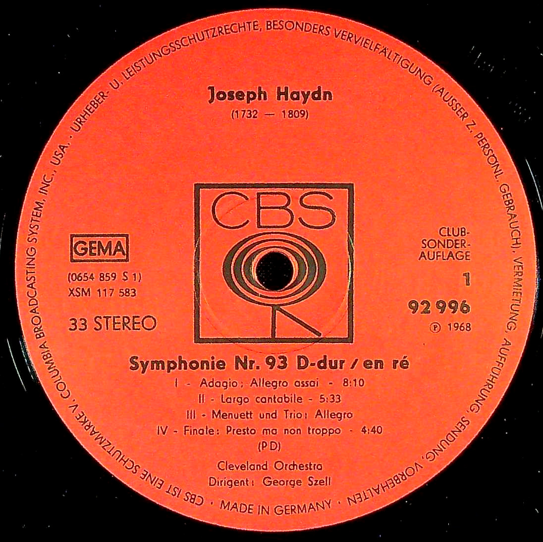 商品コード:REG-4673t[独CBS] G.セル/ ハイドン:交響曲93番, 94番「驚愕」