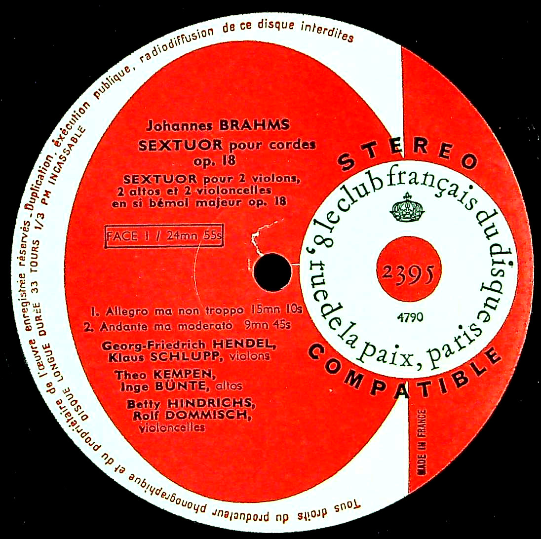 商品コード:1405-064[Club Français] サロワール六重奏団/ ブラームス:弦楽六重奏曲1番Op.18, 弦楽六重奏曲2番Op.36