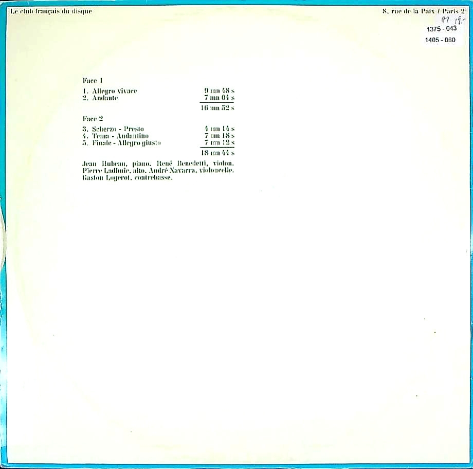 商品コード:1405-060[Club Français] J.ユボー(pf) R.ベネデッティ(vn) 他/ シューベルト:五重奏曲Op.114「鱒」