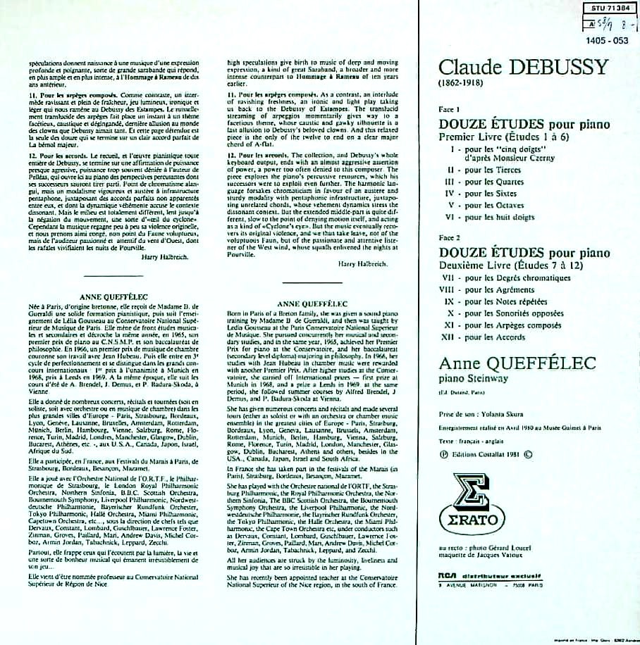 商品コード:1405-053[ERATO] A.ケフェレック(pf) / ドビュッシー:12の練習曲