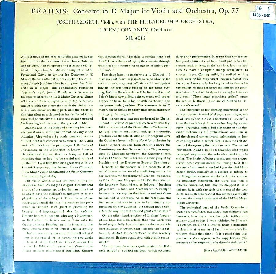 商品コード:1405-040[COLUMBIA] J.シゲティ(vn)/ ブラームス:Vn協奏曲Op.77