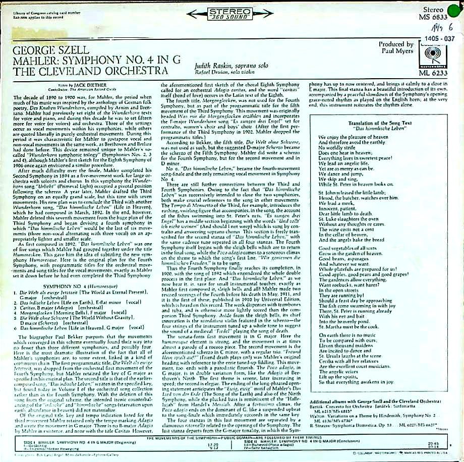 商品コード:1405-037[COLUMBIA] G.セル/ マーラー:交響曲4番