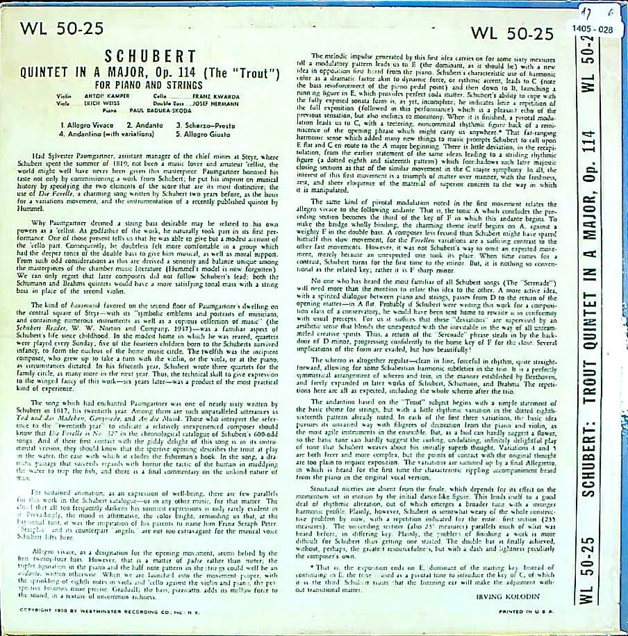 商品コード:1405-028[WESTMINSTER] P.バドゥラ・スコダ(pf) ウィーン・コンツェルトハウスQt. / シューベルト:五重奏曲Op.114「鱒」