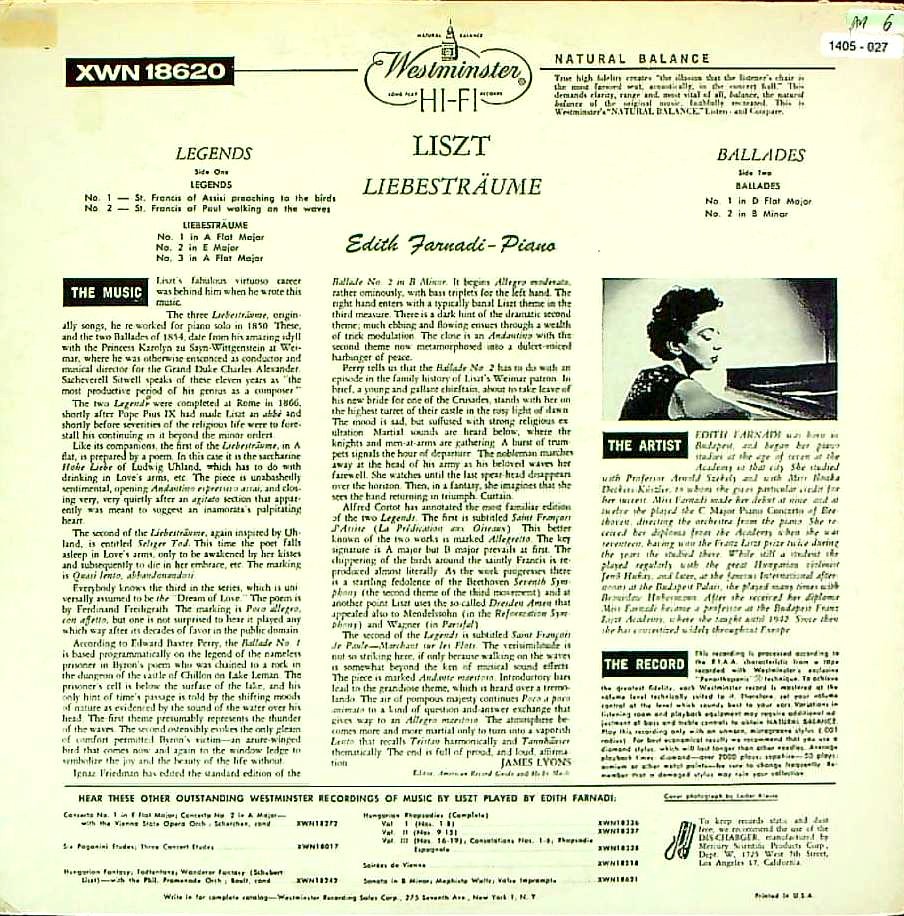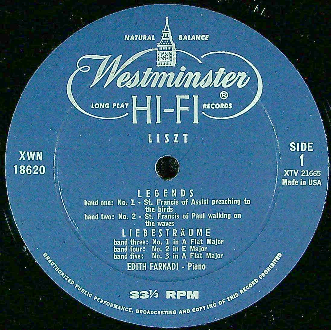 商品コード:1405-027p[WESTMINSTER] E.ファルナディ(pf) / リスト:Pf作品集Vol.1/2つの伝説, 愛の夢, 2つのバラード