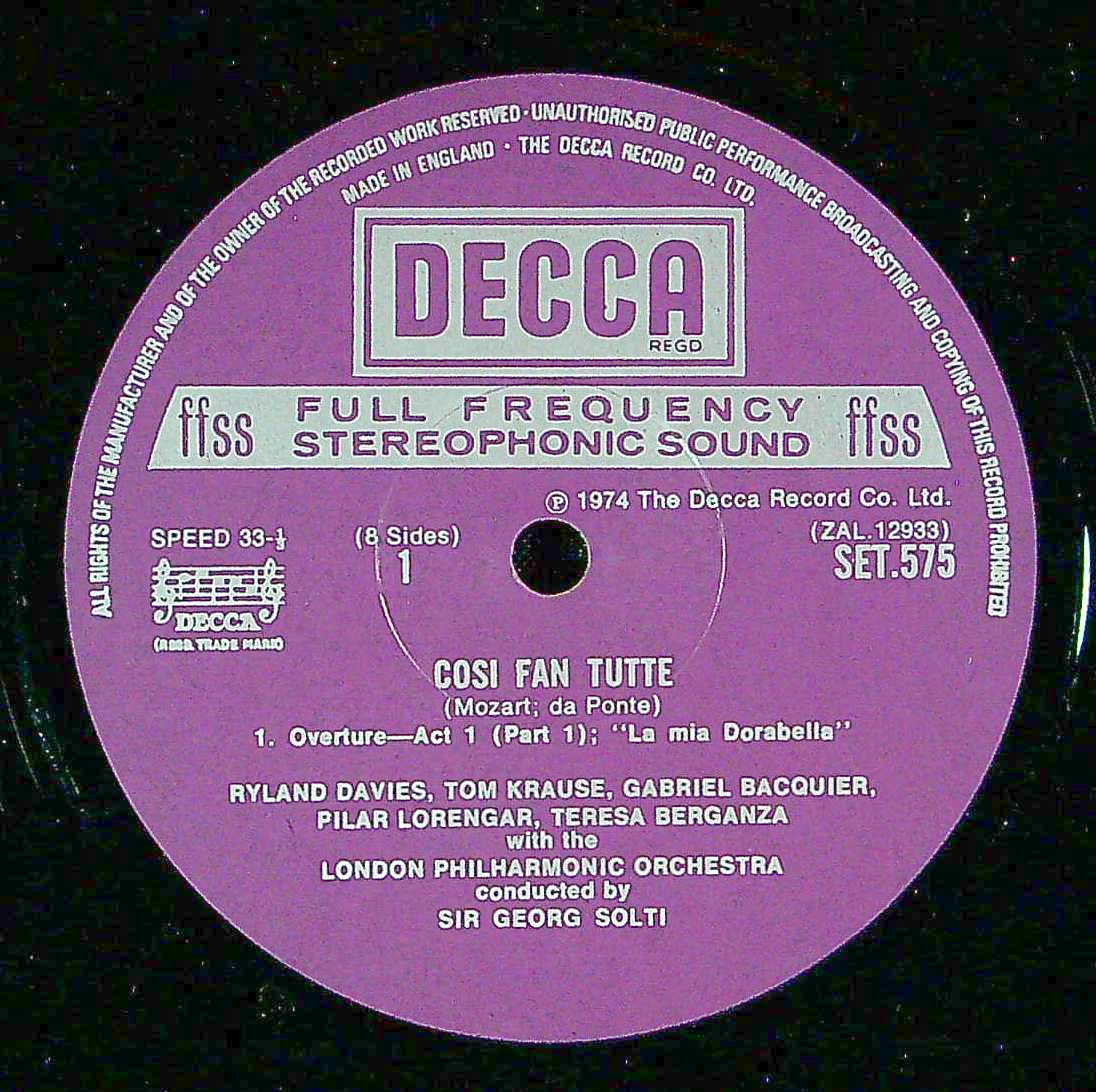 商品コード:1405-015[DECCA] G.ショルティ / モーツァルト:オペラ・ブッファ「コジ・ファン・トゥッテ」K.588(全曲)