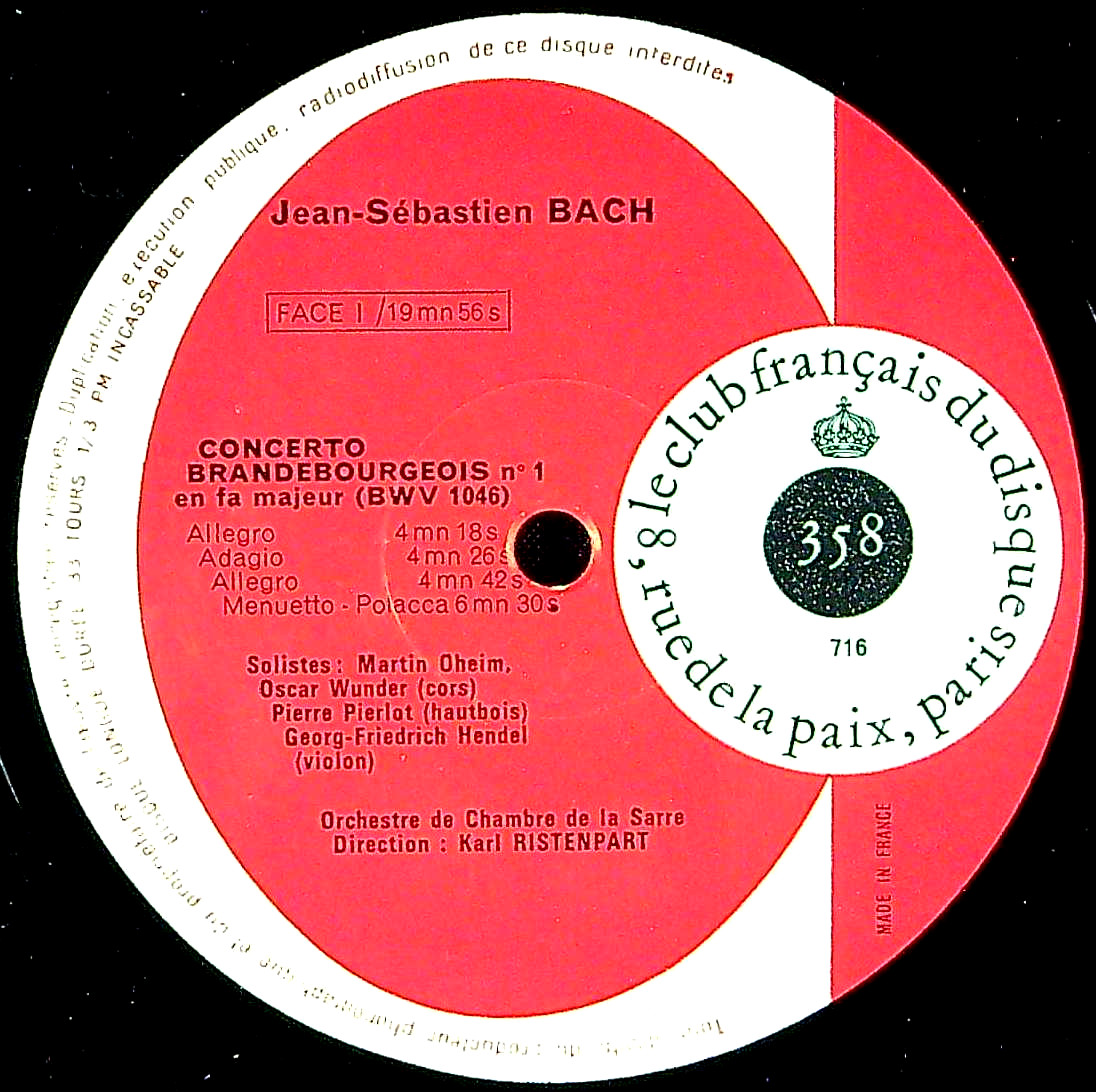 商品コード:1405-011[Club Français] K.リステンパルト / バッハ:ブランデンブルク協奏曲(全6曲)BWV.1046-1051