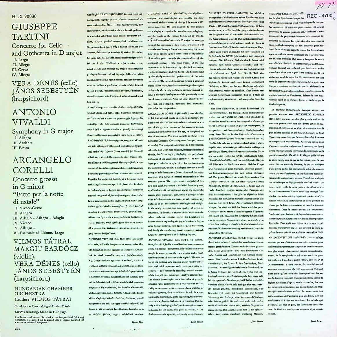 商品コード:REG-4700t[洪HUNGAROTON] V.デーナシュ(vc) 他/ タルティーニ:Vc協奏曲, ヴィヴァルディ:交響曲, コレッリ:合奏協奏曲