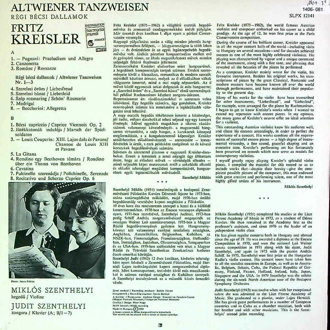 商品詳細:HUNGAROTONでクライスラーのVn作品集を録音したのはP.チャバ/コチシュ(1982年)とこのセントヘイ姉弟だけ。弟のミクローシュ(Vn)は1951年生まれ、姉のユディットは(pf)は1943年生まれの姉弟デュオ。これは2人の2枚目の録音らしい。前出のチャバ達より2年早い1980年録音。艶のある音色、キレのある表現、1980年とはいえ、これならシニアの方にも聴けると思う。ミクローシュ・セントヘイ(1951-)はハンガリー・ブダペスト生まれの男性ヴァイオリン奏者。1964年からバルトーク音楽学校でラニー・マルギットにヴァイオリンを学び、1968年から1973年までフランツ・リスト音楽院でデーネシュ・コヴァーチの薫陶を受けた。1971年にはレオ・ヴェイネル・ヴァイオリン・ソナタ・コンクールに妹のユディト・セントヘイと出場して2位入賞し、1973年に再度同コンクールにアンドラーシュ・シフと共に出場して優勝した。さらに1975年にはハンガリー放送主催のヴァイオリン・コンクールで優勝している。以降、ブダペストso.のゲスト・ソリストとして定期的に出演。又、姉のユディトと共にソナタや小品集の録音を行う。これは姉のユディト・セントヘイとのデュオ。ブラームス:Vnソナタ集より2年ほど早いLP第2作目である。セントヘイはこれぞ東欧の弦というような澄んだ美しい音色を持つ。柔らかい表現で、1970年代の奏者としてはトップクラスだろう。新世代のヴァイオリン奏者だがやはり東欧圏に息づく伝統の味わいや哲学は失われていないと感じさせる若手である。1978年からフランツ・リスト音楽院のヴァイオリン科講師となり、1989年に准教授に昇格した。1988年には同音楽院の若手演奏家たちとハンガリー・ヴィルトゥオーゾ室内管弦楽団を立ち上げ、その音楽監督を務める。驚くほど品の良い滑らかな音色を持ち、抑えた表情で黄金期の技術がそのまま近代に受け継がれている。このLPは選曲もよく「Violin Recital」としては格段に楽しめる内容!。美しい音色に加えパワーも備えた優秀なヴァイオリン奏者。1999年からは指揮者も兼任している。グリーンスボロ音楽祭(米国)、フィンランド、ブラジルでマスタークラスを開催。ヨーロッパのほぼすべての国に加え、北米、南米、アジア、オーストラリア、アフリカでも演奏活動を行った。 2004年4月12日、彼のキャリア開始35周年を記念して、彼は音楽アカデミーの大ホールでヴィヴァルディ、チャイコフスキー、ブラームスの協奏曲を演奏する記念コンサートを開催した。デビュー録音は1973年からで、2013年発売のCDまでは確認している。現在75歳(2026年時点)だが引退していると思われる。彼はリスト賞(1986年)、MSZOSZ賞(1990年)、ハンガリー共和国功労勲章オフィサー十字章(1994年)、ヴィルモス・タートライ記念指輪(2000年)、コシュート賞(2008年)を受賞している。1976年以来、ハンガリー国家から贈られたジョセフ・グァルニエリの名器ヴァイオリン(1723年)を演奏していた。当LPは大推薦の1枚!