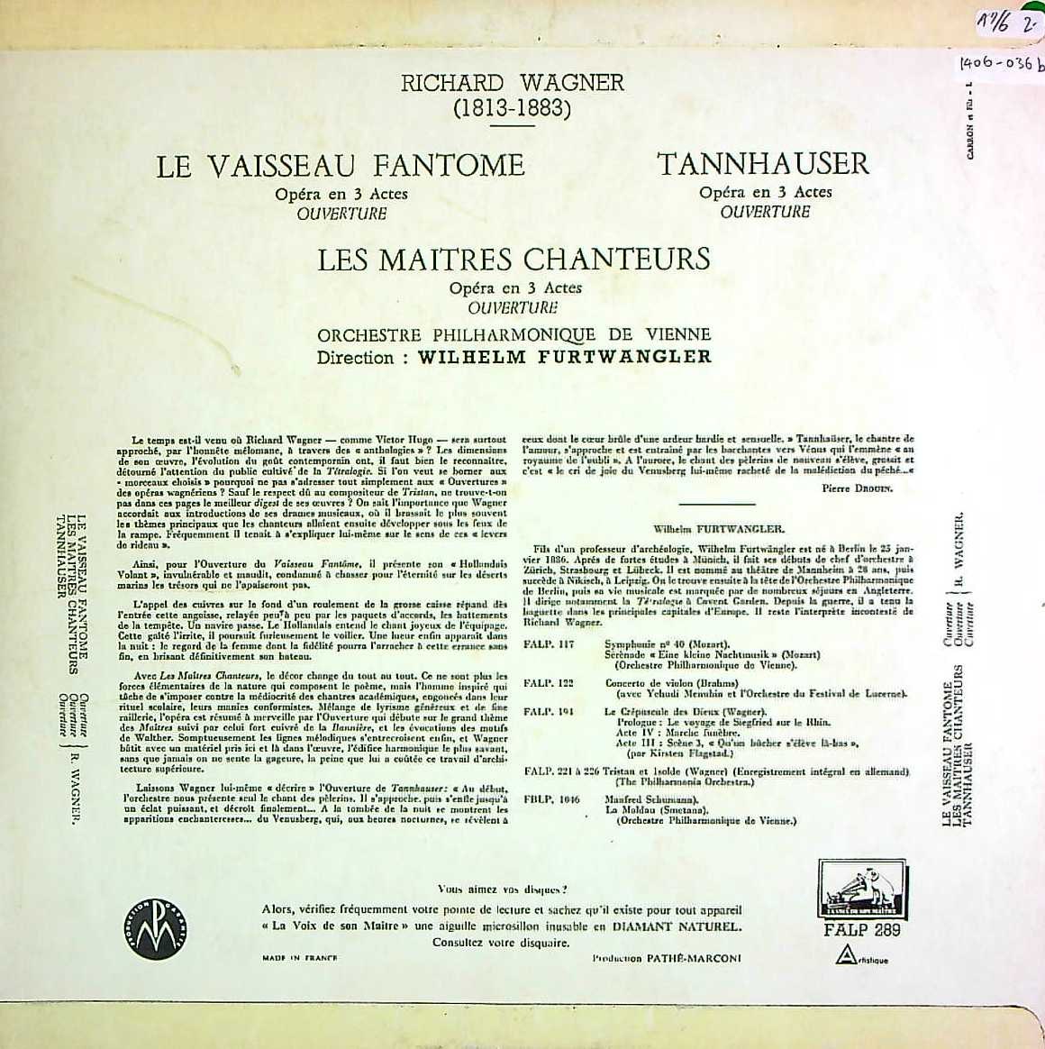 商品コード:1406-036b[VSM] W.フルトヴェングラー/ ワーグナー:序曲集/オランダ人, マイスタージンガー, タンホイザー