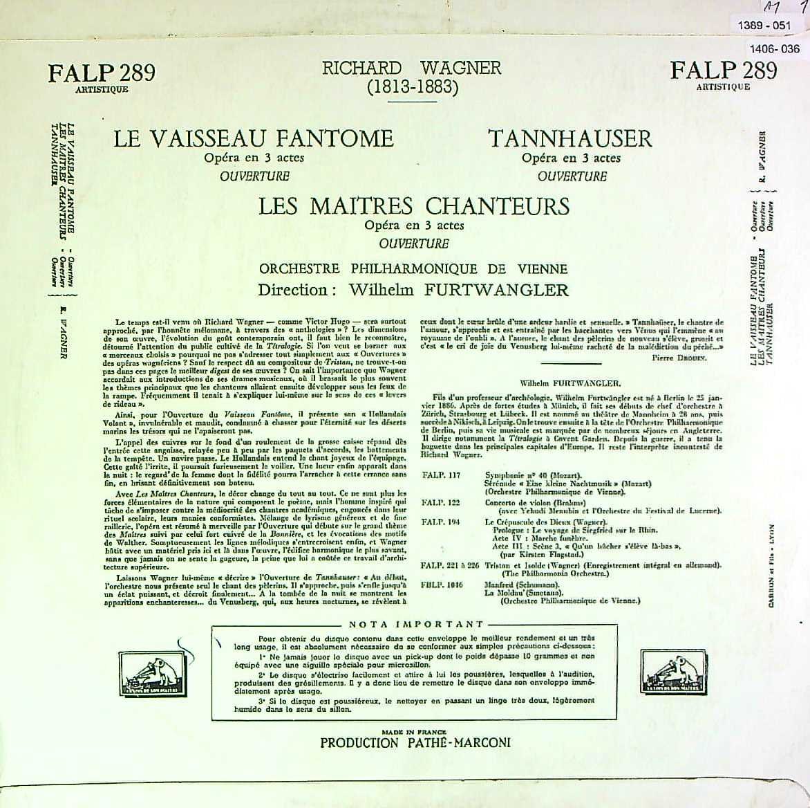 商品コード:1406-036[VSM] W.フルトヴェングラー/ ワーグナー:序曲集/オランダ人, マイスタージンガー, タンホイザー