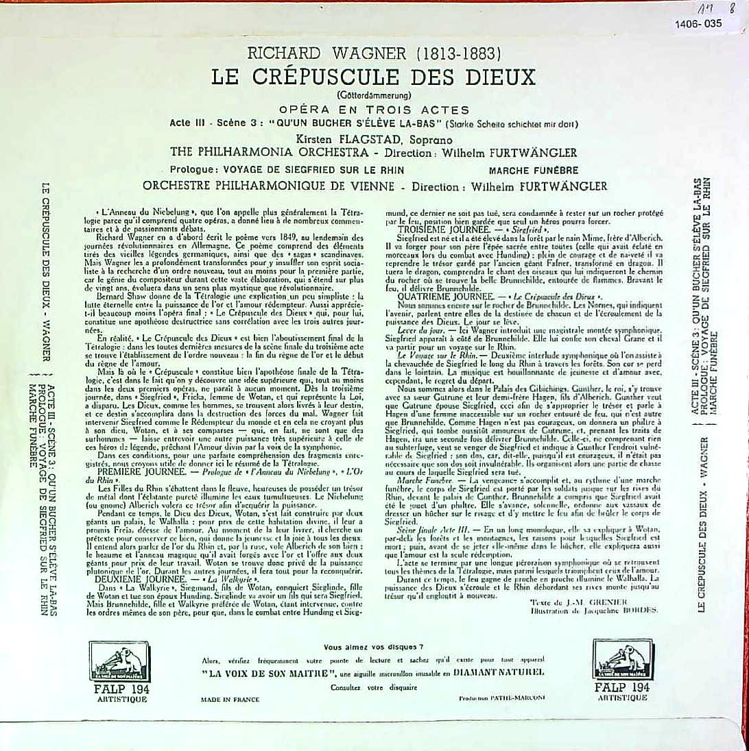 商品コード:1406-035[VSM] K.フラグスタート(s) W.フルトヴェングラー/ ワーグナー:神々の黄昏~ブリュンヒルデの自己犠牲, ラインへの旅, 葬送行進曲
