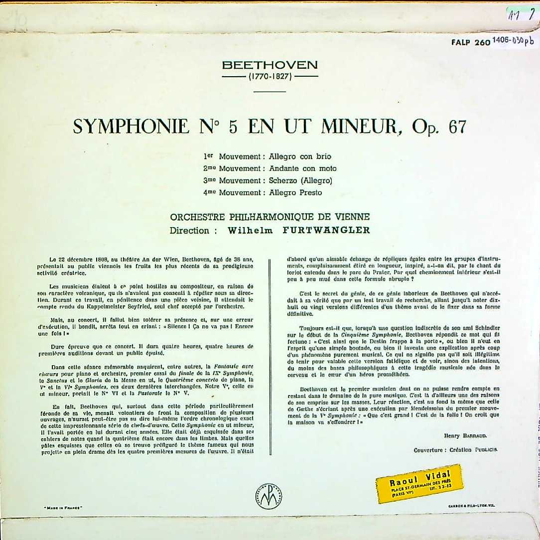 商品詳細:フランス・プレスの「運命」。カーヴの関係か英国のALP 1195より押し出しが強く、こちらの方が圧倒的に迫力がある。1954年ウィーンでの録音。仏盤は価格も安いが、その理由はプレス枚数が圧倒的に多いからで、音質が落ちるからではない。やや音が荒いという意見もあるが、その分メリハリがついていることも確かで、こちらを好まれる方も多い。そしてジャケットの面でも、間違いなく仏盤の方がデザインが優れている。フランス盤はプレスの種類が非常に多く、年代により価格に反映している。勿論英国プレスより安価である。フランスにはジャケットが数種あるが、異なるジャケットにも同じ盤が入っているケースが多い。重量盤で出てくる音も重量級である!この録音は世界的に有名で非常に多くの国でプレスされた。フルトヴェングラーの代表的な録音の一つ!