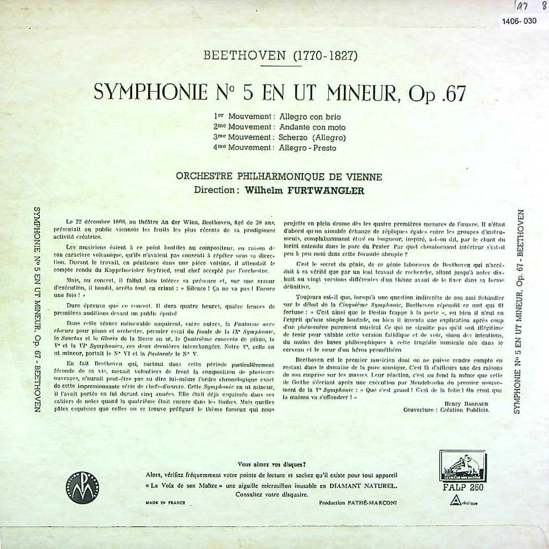 商品詳細:フランス・プレスの「運命」。カーヴの関係か英国のALP 1195より押し出しが強く、こちらの方が圧倒的に迫力がある。1954年ウィーンでの録音。仏盤は価格も安いが、その理由はプレス枚数が圧倒的に多いからで、音質が落ちるからではない。やや音が荒いという意見もあるが、その分メリハリがついていることも確かで、こちらを好まれる方も多い。そしてジャケットの面でも、間違いなく仏盤の方がデザインが優れている。フランス盤はプレスの種類が非常に多く、年代により価格に反映している。勿論英国プレスより安価である。フランスにはジャケットが数種あるが、異なるジャケットにも同じ盤が入っているケースが多い。重量盤で出てくる音も重量級である!この録音は世界的に有名で非常に多くの国でプレスされた。フルトヴェングラーの代表的な録音の一つ!