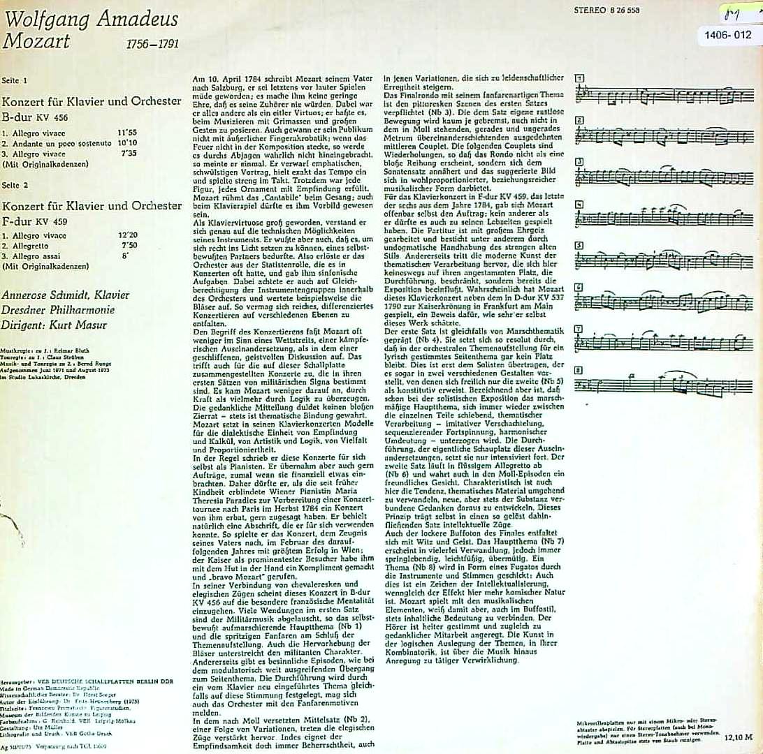 商品コード:1406-012n[ETERNA] A.シュミット(pf) / モーツァルト:Pf協奏曲18番K.456, Pf協奏曲19番K.459