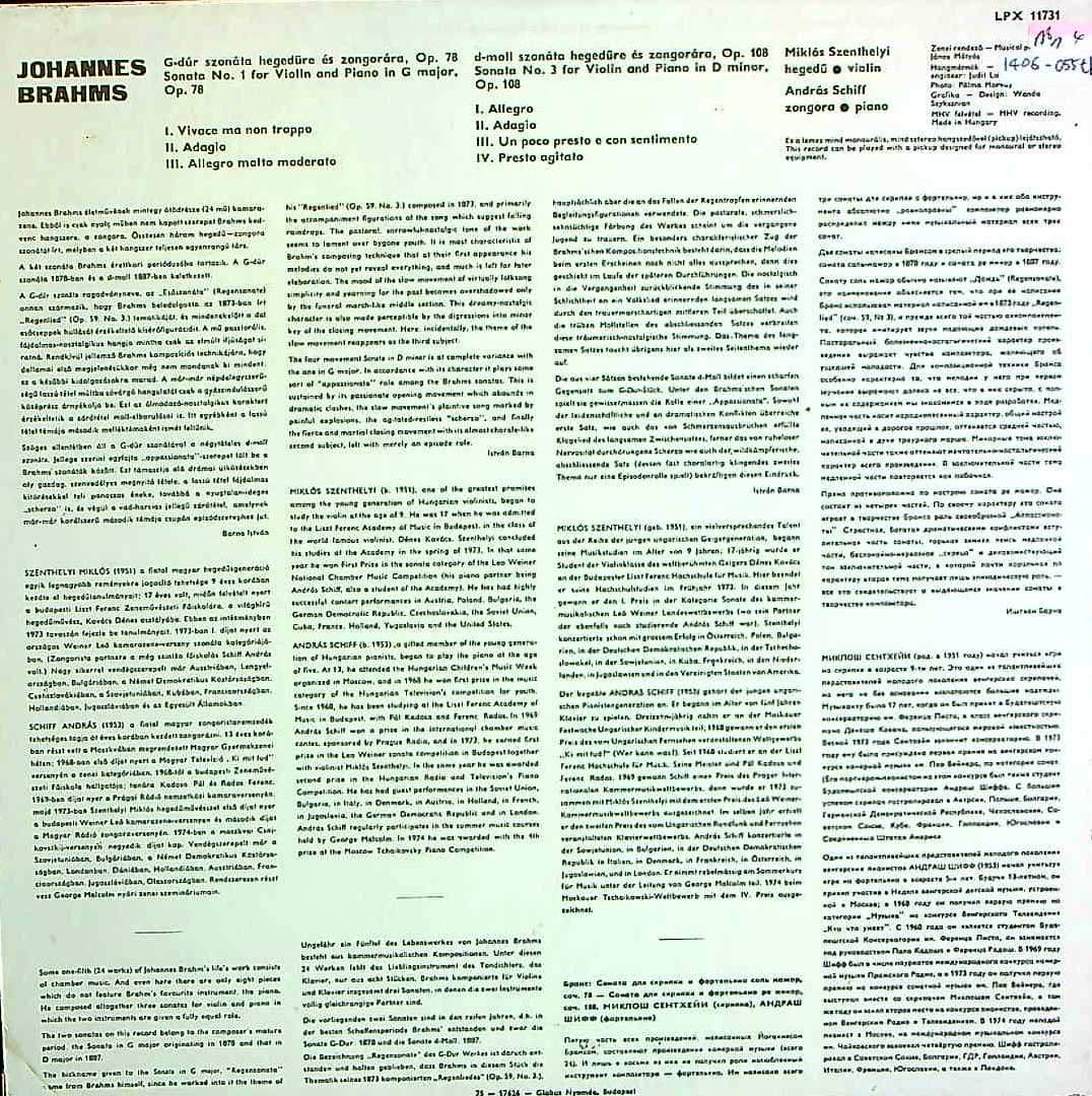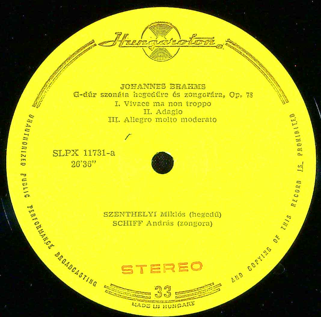 商品コード:1406-055tb[HUNGAROTON] M.セントヘイ(vn)A.シフ(pf) / ブラームス:Vnソナタ1番Op.78「雨の歌」, Vnソナタ3番Op.108