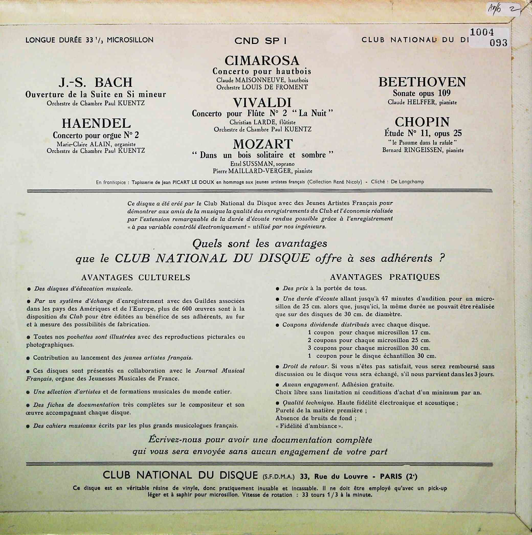 商品コード:1004-093[CLUB NATIONAL DU DISQUE] CNDプロモーションLP バッハ ヘンデル チマローザ ヴィヴァルディ モーツァルト ベートーヴェン ショパン