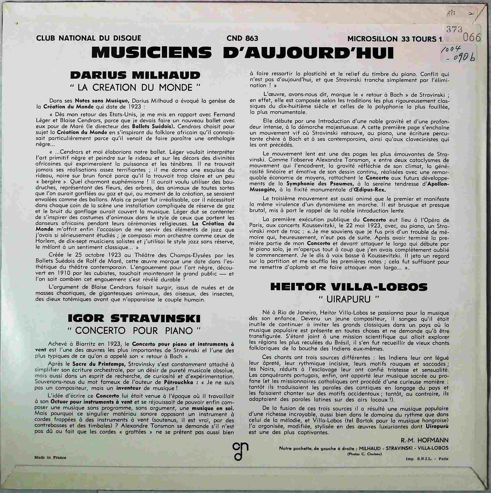 商品コード:1004-090b[CLUB NATIONAL DU DISQUE] 「現代の音楽家達」 ミヨー ストラヴィンスキー ヴィラ・ロボス