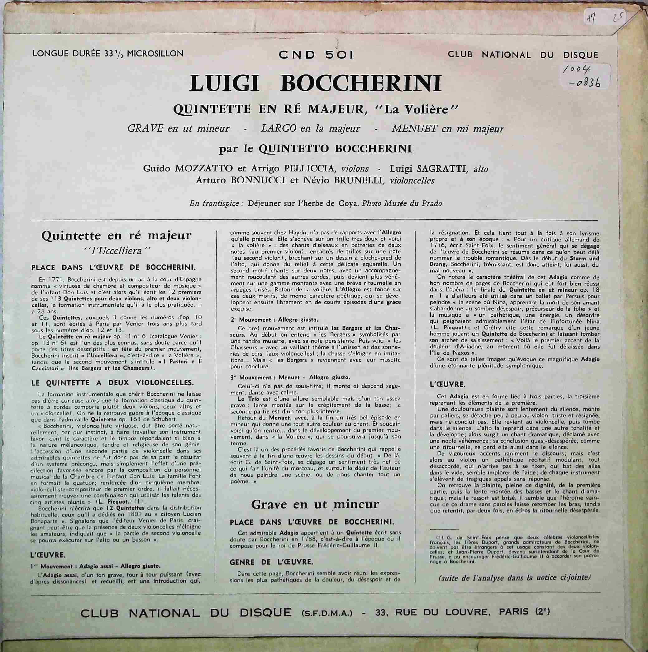 商品コード:1004-083b[CLUB NATIONAL DU DISQUE] ボッケリーニ弦楽五重奏団 ボッケリーニ:弦楽五重奏曲集 「鳥小屋」他全5曲