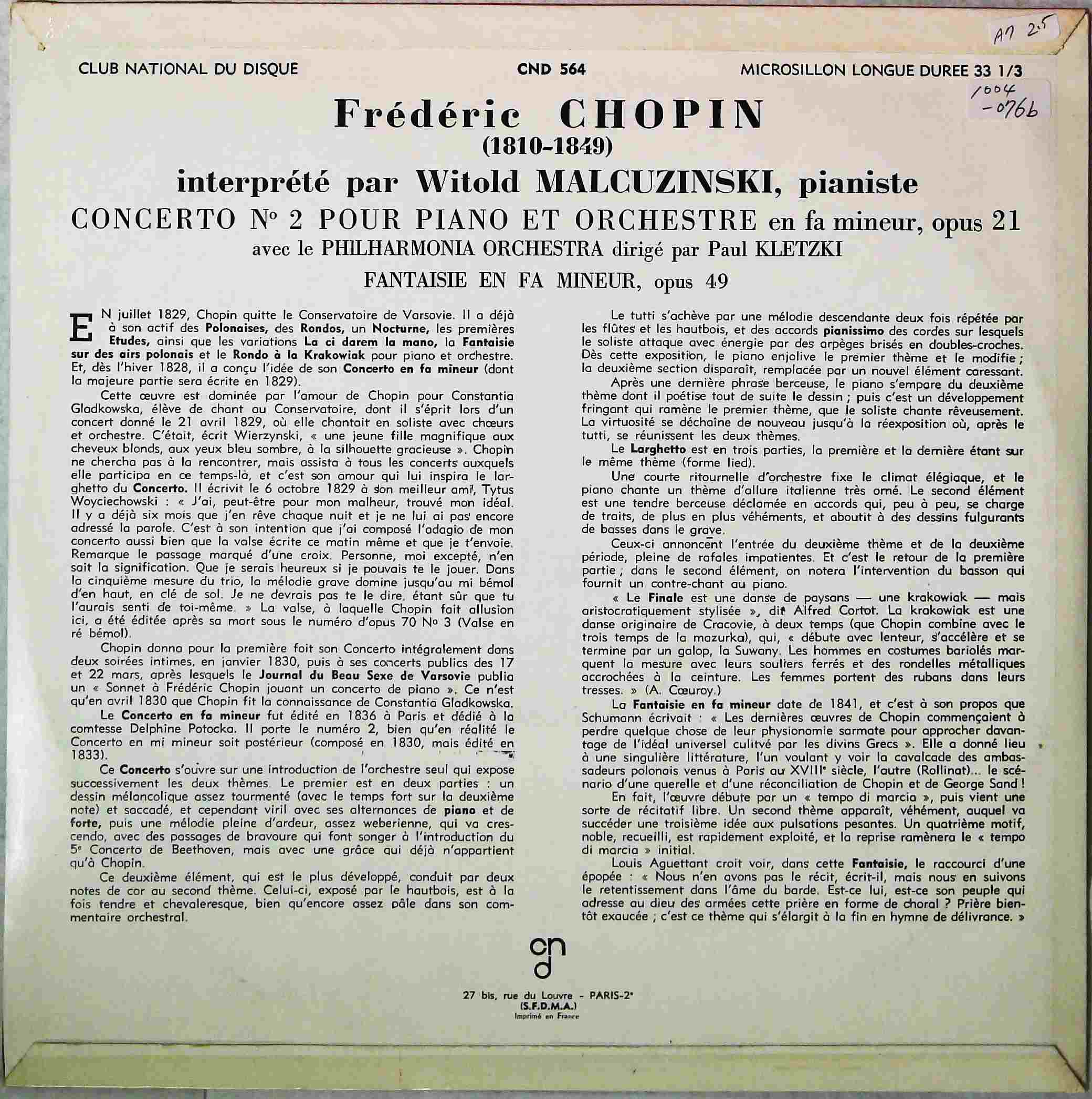 商品コード:1004-076b[CLUB NATIONAL DU DISQUE] W.マウツジンスキ(pf) ショパン:Pf協奏曲2番 他 P.クレツキ/フィルハーモニアo.