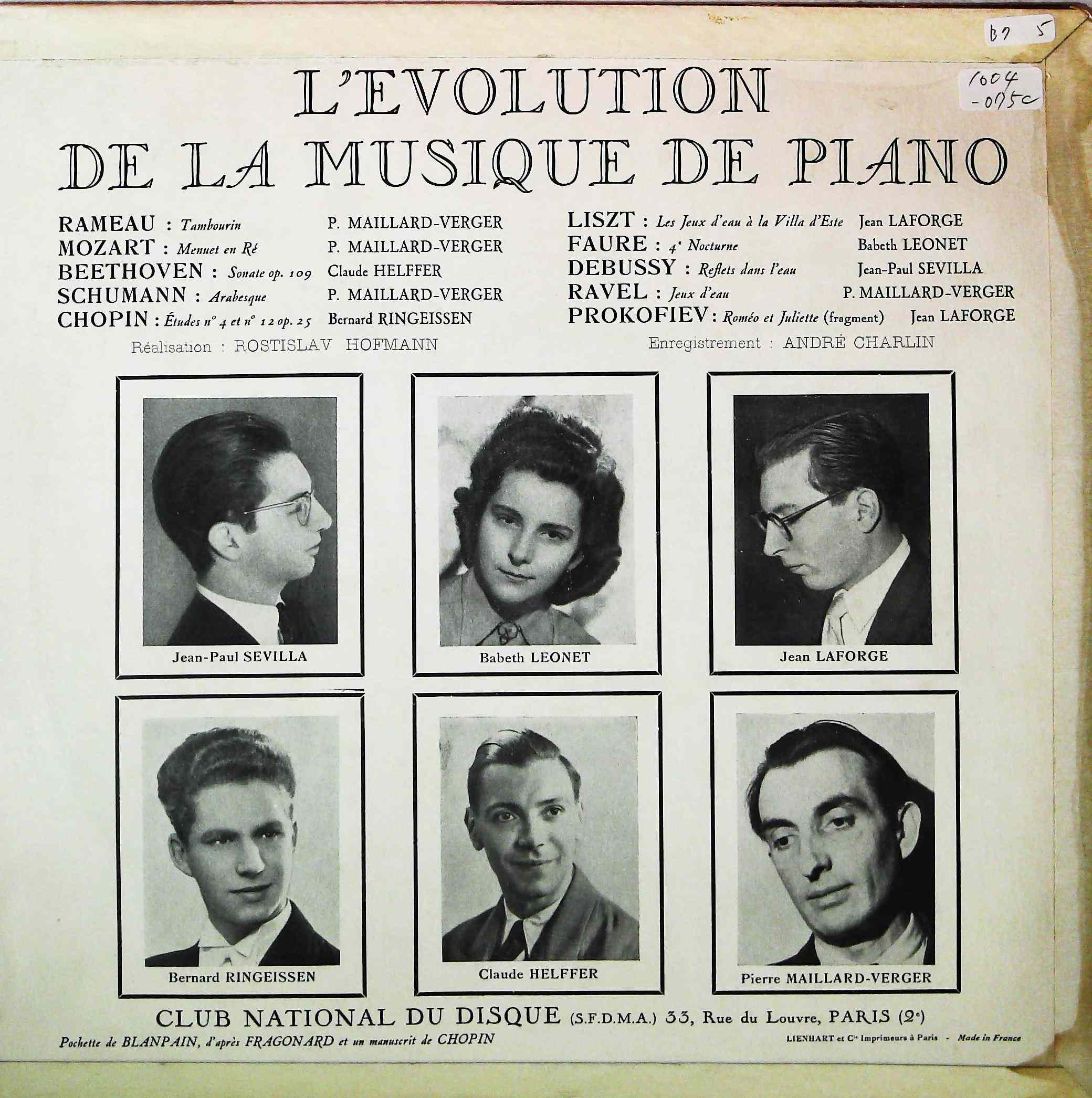 商品コード:1004-075c[CLUB NATIONAL DU DISQUE] 「ピアノ音楽の進展」 6人のピアニストによる10曲 B.ランジェサン J.ラフォルジュ 他