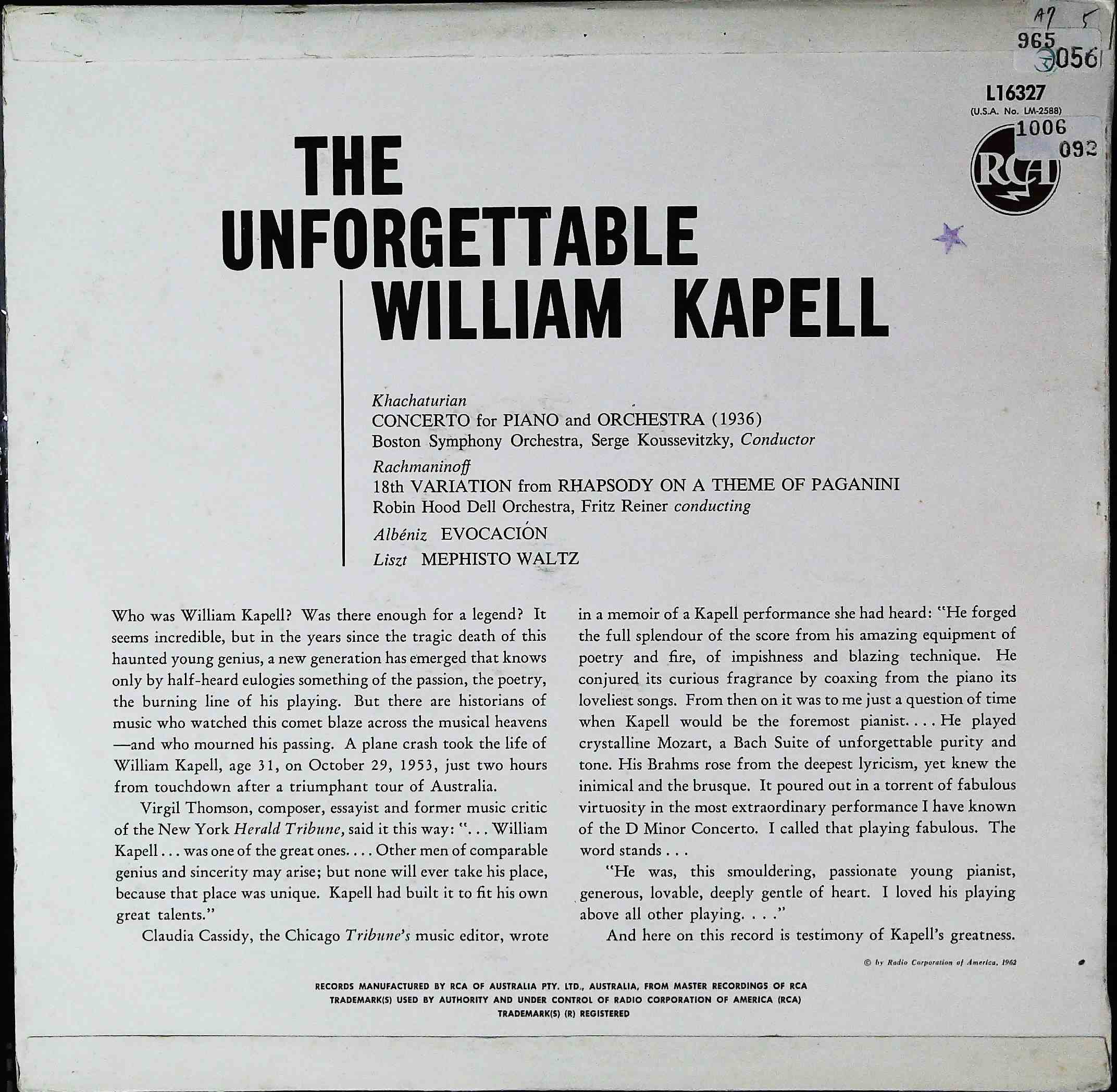 商品コード:1006-092[RCA] W.カペル(pf) ハチャトゥリアン/ラフマニノフ/アルベニス/リスト クーセヴィツキー/ライナー 指揮