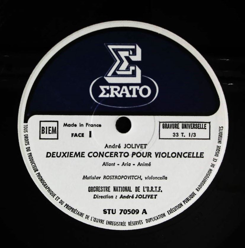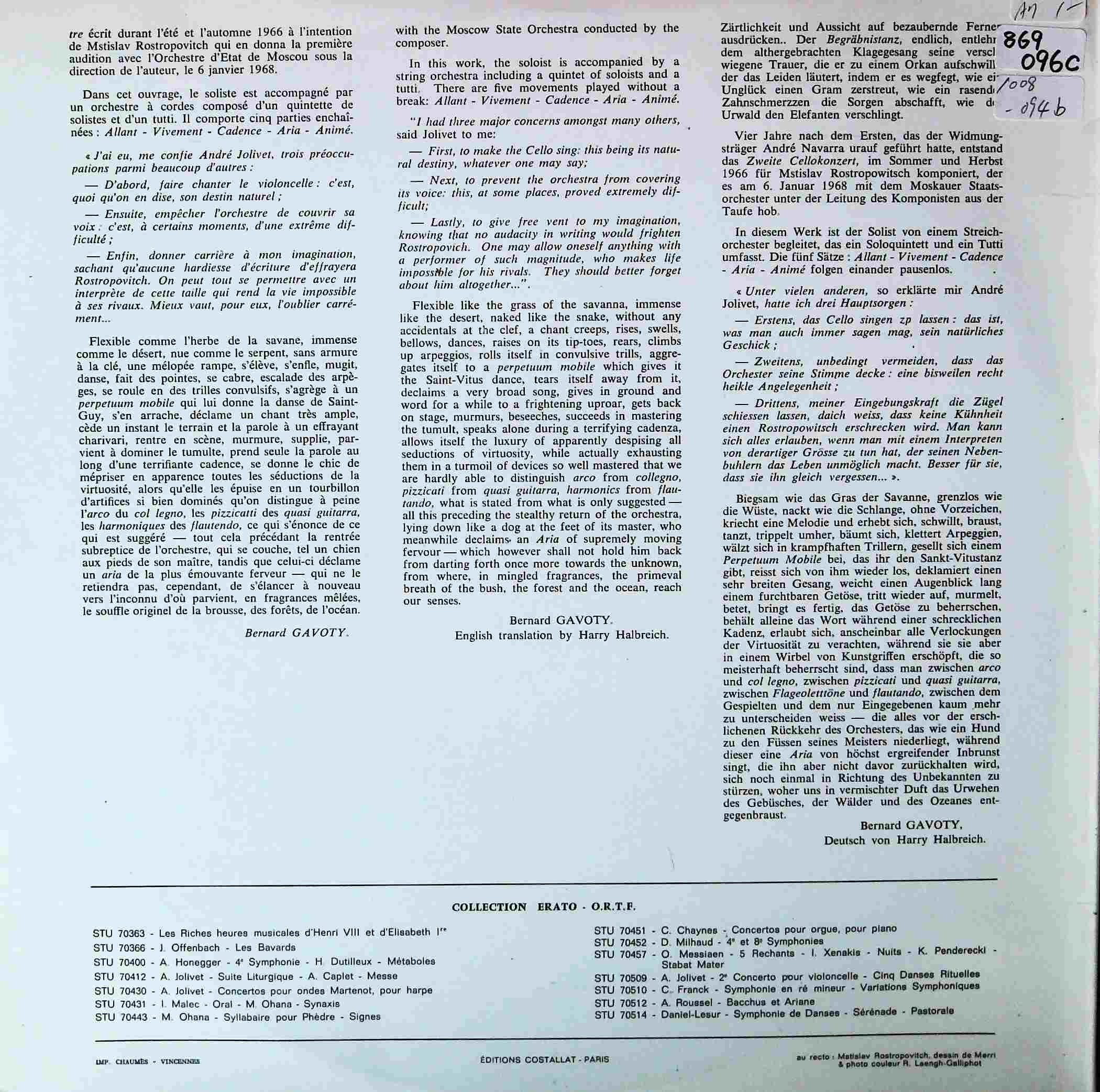 商品コード:1008-094b[ERATO] ジョリヴェ Vc協奏曲2番 M.ロストロポーヴィチ(vc) A.ジョリヴェ/フランス国立放送o.