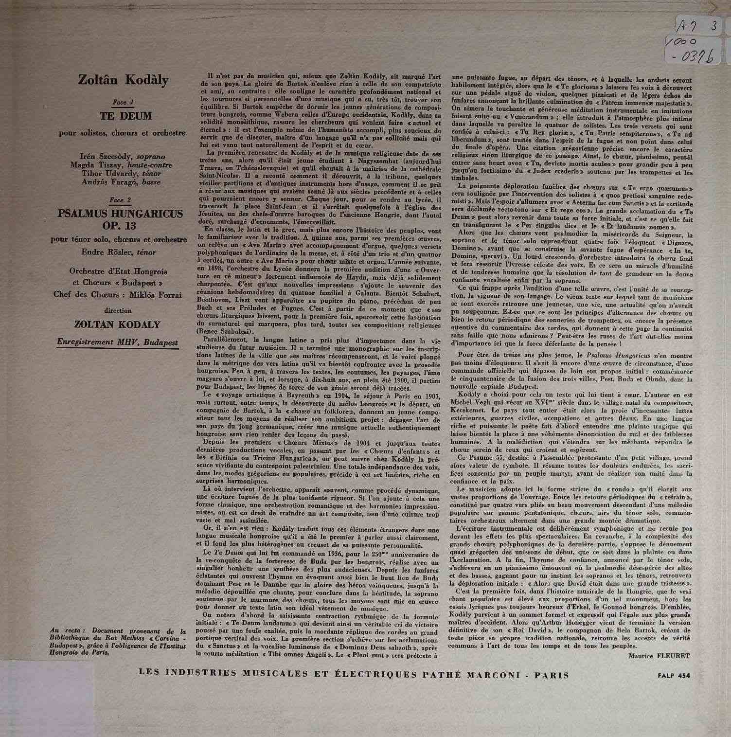 商品コード:1000-037b[La Voix De Son Maître] コダーイ自作自演 テ・デウム ハンガリー詩篇 FALP