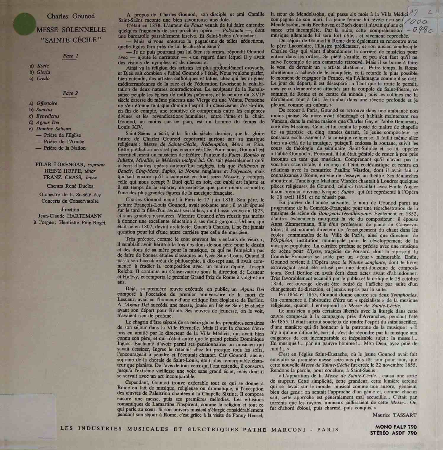 商品コード:1000-048c[La Voix De Son Maître] アルトマン指揮/パリ音楽院o. グノー 聖チェチリアの祝日のためのミサ・ソレムニス