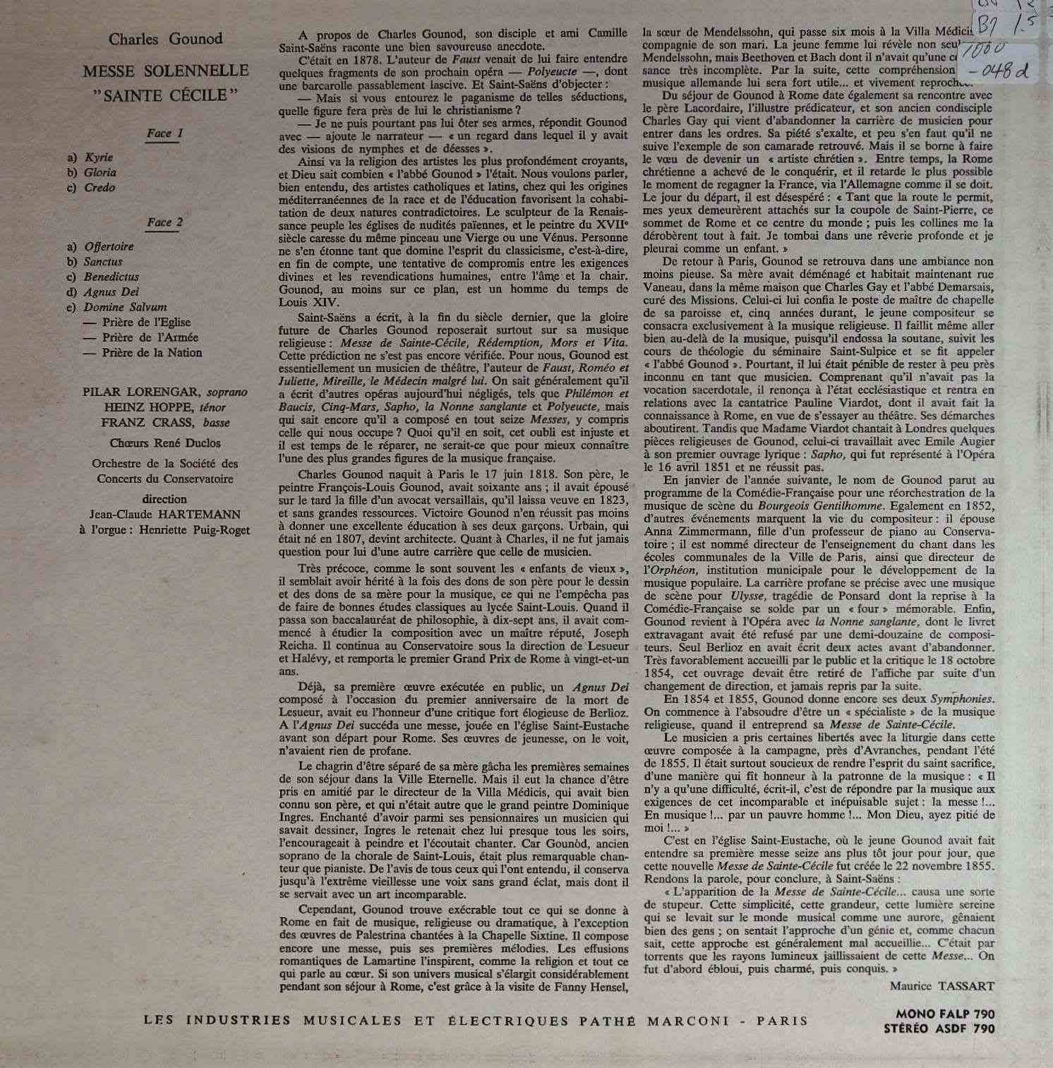 商品コード:1000-048d[La Voix De Son Maître] アルトマン指揮/パリ音楽院o. グノー 聖チェチリアの祝日のためのミサ・ソレムニス