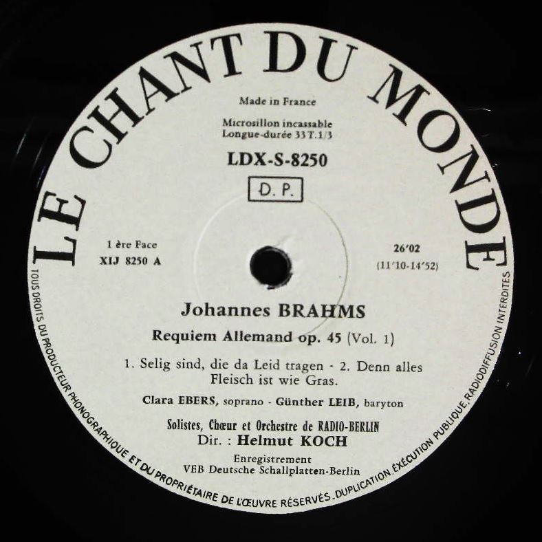 商品コード:1009-096b[Le Chant du Monde] ブラームス ドイツ・レクイエム H.コッホ/ベルリン放送o./cho.