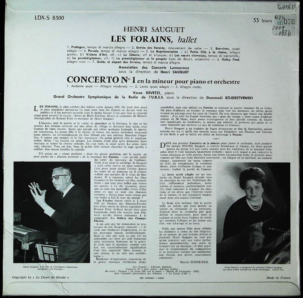 商品コード:1009-083b[Le Chant du Monde] ソーゲ:Pf協 1番 V.デヴェツィ(pf) G.ロジェストヴェンスキー/ソビエト放送o. 旅芸人たち H.ソーゲ指揮コンセール・ラムルーo.(バレエ)