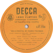 商品詳細:1952年録音。翌'53年発売。「チェロの貴公子」等と呼ばれるピエール・フルニエは1906年パリに生まれ、1924年デビュー。1937年31歳ですでにエコール・ノルマルの教授となる。1940年代よりSP録音があるが、LPはDECCAが最初のレーベル。しかし、バックハウスとのブラームス('55年)を最後にベーム、ケンプらと共にDECCAを去る。プロデューサー・カルーショウとの対立があったといわれる。DECCAに1952年頃から協奏曲と室内楽数点を残したが、小品集は唯一。その後、英Columbiaに移籍し、やはり2枚の小品集を残した。これがLPで最初の小品集となる。バッハのVcソナタ1番がまるまる入る。落ち着いた品のある表現と深みのある音色は、万人を魅了してやまない。DGGに移ってから失われた力のある重低音もここでは味わえる。フォーレ「糸を紡ぐ女」に5〜6回出るキズあり。