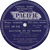商品詳細:1954年PACIFICから発売された最初の12インチ。但し、ラヴェルのみこれ以前1951年仏EKOレーベルに初回録音(LP初録音)があり、これが2回目。ドビュッシーは初回である。ちなみに、良く知られている1969年のステレオ録音(VSM)は、同じ団体とは思えない変化がある。なお、PACIFICには他に3枚のLPがあり、シューベルト11番、シューマン1番、モーツァルトK.387/ディヴェルティメントK.136-8。10""でアイネ・クライネ/ハイドンOp.3-5。これらの特徴は、若き情熱の発露等という表現では説明のつかない圧倒的なエネルギーが満ち溢れている。中でも当ラヴェル・ドビュッシーの陶酔感は圧巻で、強烈な再生音と共に、情感の揺らぎ、音色の絶妙な変化等、およそSQ演奏の一大事件と言ってもよい傑作中の傑作であることは確か。硬質な表現だがロマンチックという、およそ不可能な表現力を持った奇跡の録音!特筆すべきキズは無し。