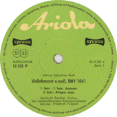 商品詳細:2回ある録音の2回目。実のところ、録音年代は不詳であり、DENONのCDも不詳としている。しかし、バルヒェットは1962年に亡くなっており、1960〜1年に同じくティレガントと「ブランデンブルク」全曲、ヴィヴァルディ「四季」等が録音されていること、Ariolaのスタートが1958年、Eurodiscとの合併以前の発売を考えると、1959年頃というのが正しいと思われる。バルヒェットはこの2曲を1954年にダヴィッソンとVOXに初回モノラル録音があり、これは2回目。しかも、2曲入りの最初の発売となる。また、最初にモノラル録音されたB.1043を加えた3曲入り11362Kも存在。同時発売?ジャケット・デザインは同じで、2種用意された。確かに、2曲入りステレオの方が入手は難しいだろう。バルヒェットのソロは前回にも増して孤高の境地に達しており、何人も寄せつけない厳しさと慈愛に溢れた優しさとが同居した、悟りすら感じさせる音を出す。全体にゆっくり目のテンポで、ティレガントの指揮はソロを包み込んでいる。聴き込むほどに味わいを増す名演と信じる。特筆すべきキズは無い。