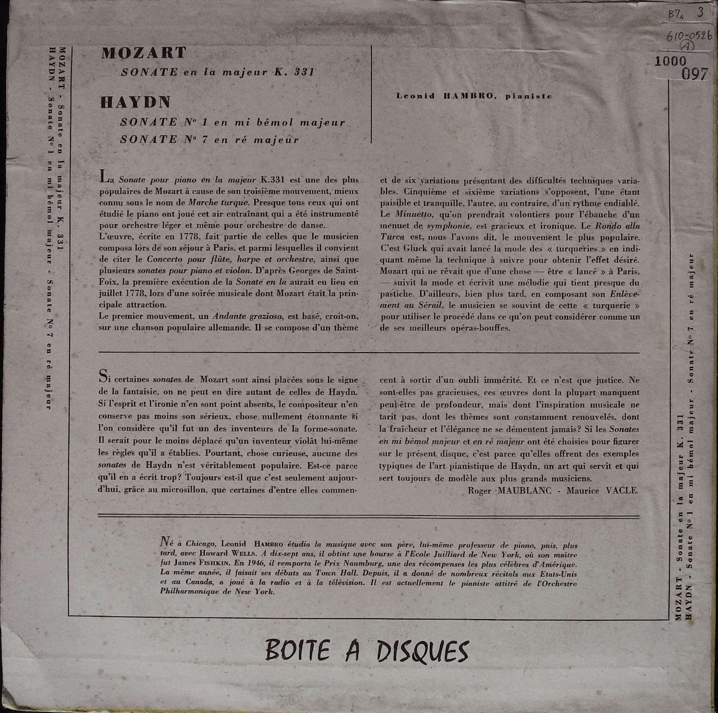 商品コード:1000-097[仏LES DISQUAIRES REUNIS] Pfソナタ集/モーツァルト:11番K.331, ハイドン:1, 7番