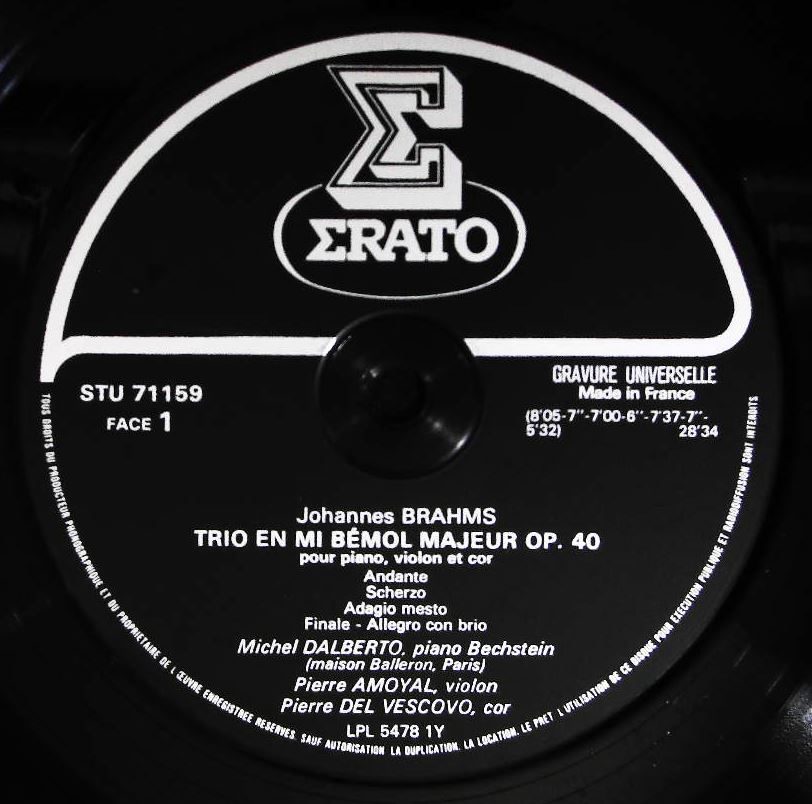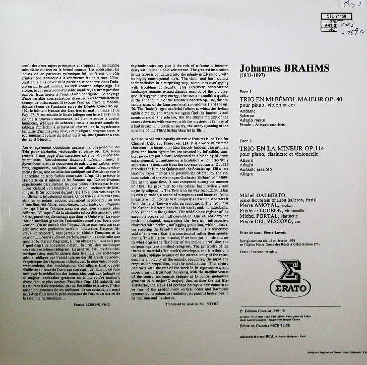 商品コード:1023-059c[ERATO] ブラームス:Hrトリオ, Clトリオ M.ダルベルト(pf) P.アモイヤル(vn) F.ロデオン(vc) 他