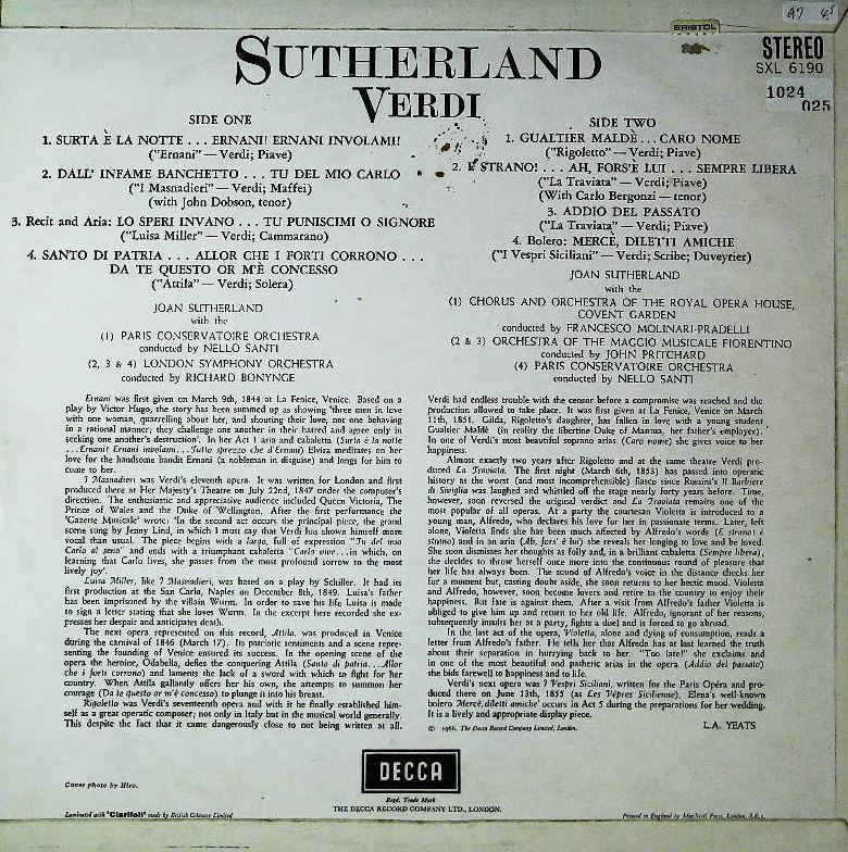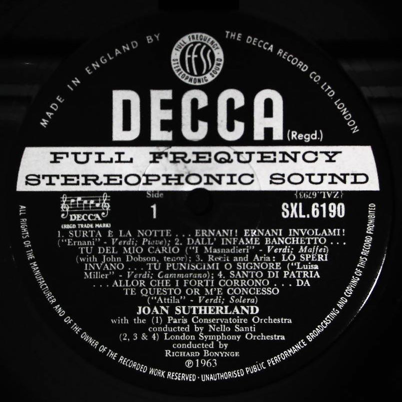 商品コード:1024-025[DECCA] ヴェルディ・オペラ・アリア集 J.サザーランド(s) N.サンティ/パリ音楽院o. R.ボニング/ロンドンso 他