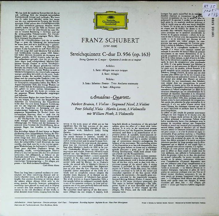 商品コード:1026-073b[DGG] シューベルト:弦楽五重奏曲 /アマデウスQt. W.プリース(vc)