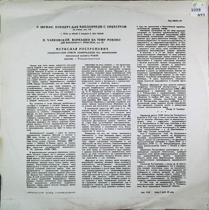 商品コード:1029-073n[MELODIYA] シューマン:Vc協奏曲, チャイコフスキー:ロココ変奏曲/M.ロストロポーヴィチ(vc) G.ロジェストヴェンスキー指揮.