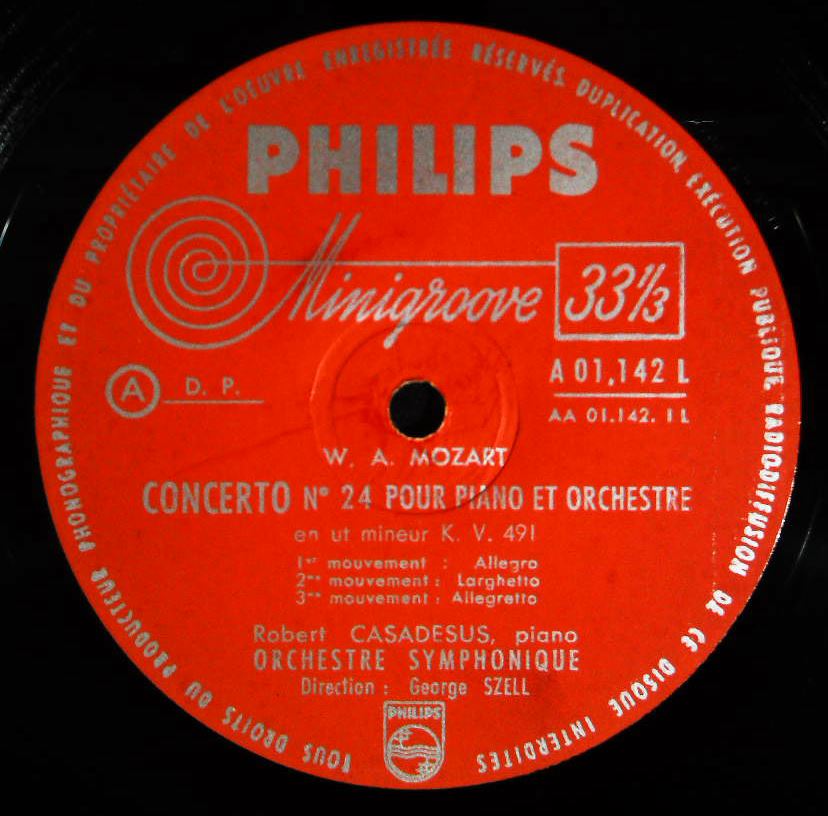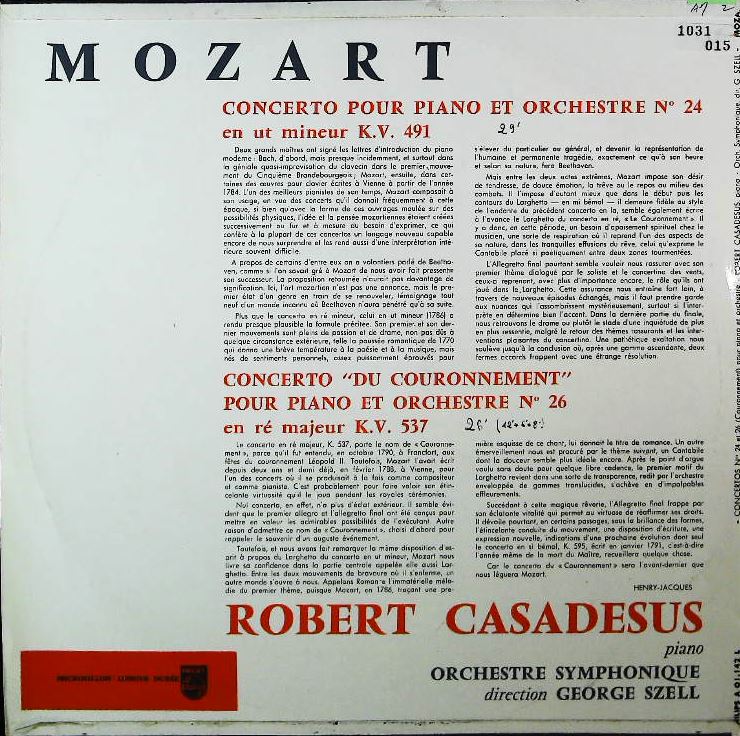 商品コード:1031-015p[PHILIPS] モーツァルト:Pf協奏曲24番K.491, Pf協奏曲26番K.537「戴冠式」/R.カサドシュ(pf) G.セル指揮コロンビアso.