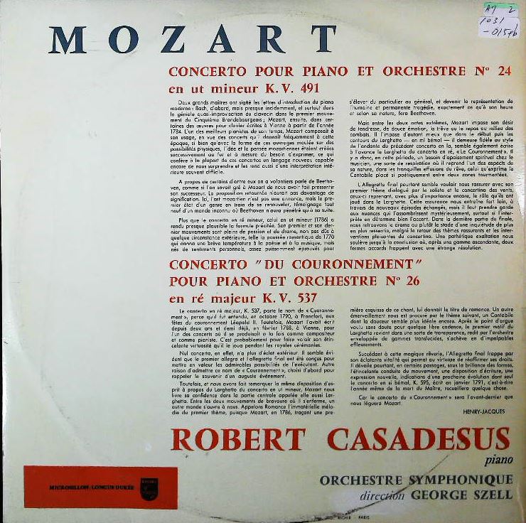 商品コード:1031-015pb[PHILIPS] モーツァルト:Pf協奏曲24番K.491, Pf協奏曲26番K.537「戴冠式」/R.カサドシュ(pf) G.セル指揮コロンビアso.