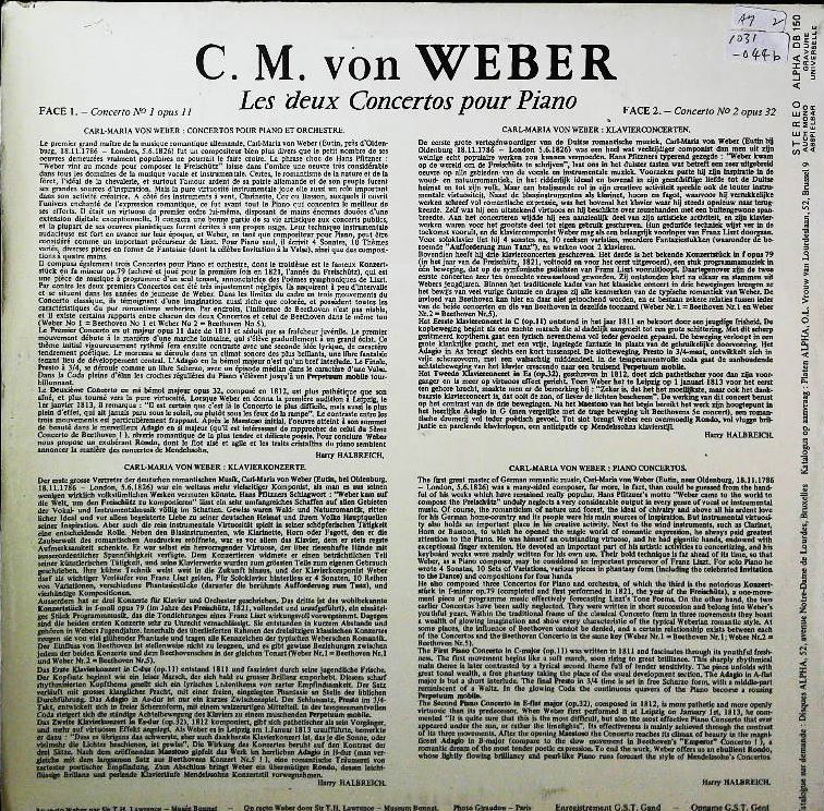 商品コード:1031-044b[ALPHA] A.デュモルティエ(pf) ウェーバー:Pf協奏曲1/2番 G.ルメール指揮リエージュ器楽Ens.