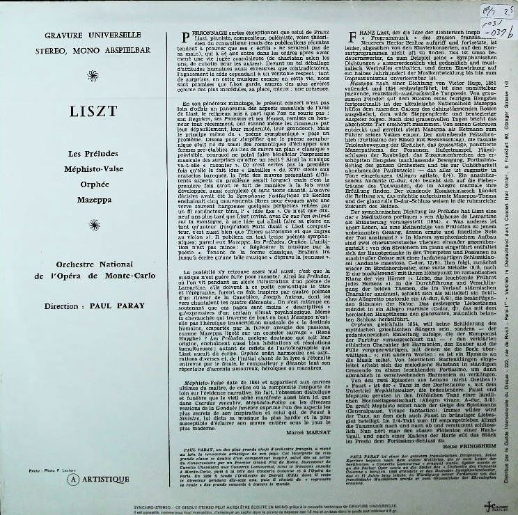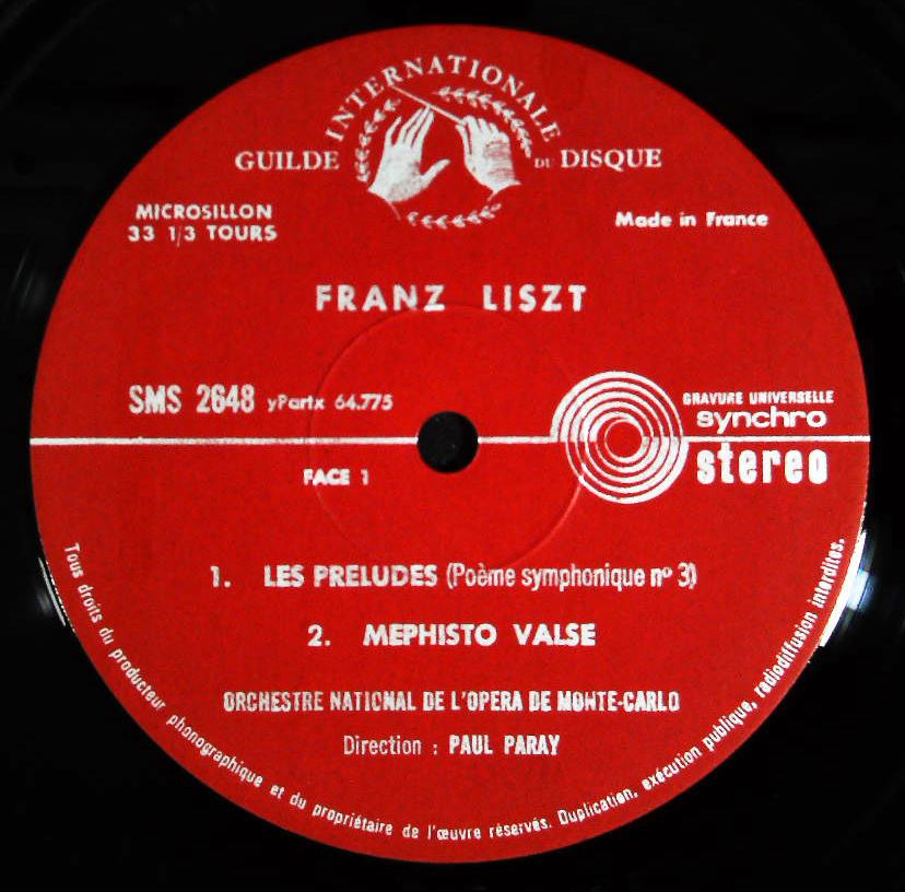 商品コード:1031-037b[Guilde Internationale Du Disque] 「リスト・フェスティヴァル」交響詩「前奏曲」, 「オルフェウス」 他/P.パレー指揮モンテカルロ国立歌劇場o.