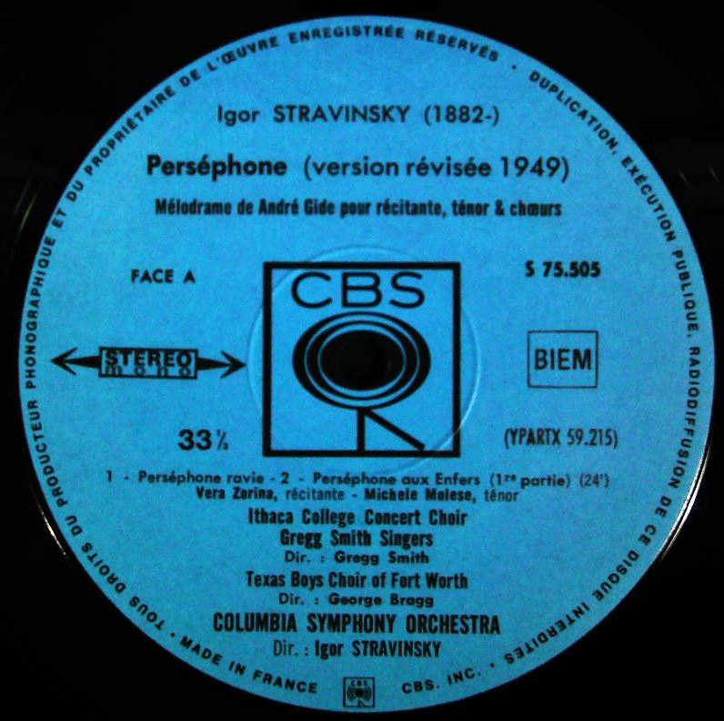 商品コード:1033-073[CBS] I.ストラヴィンスキー指揮 V.ゾリーナ(s) M.モルセ(t)/ストラヴィンスキー:ペルセフォーヌ