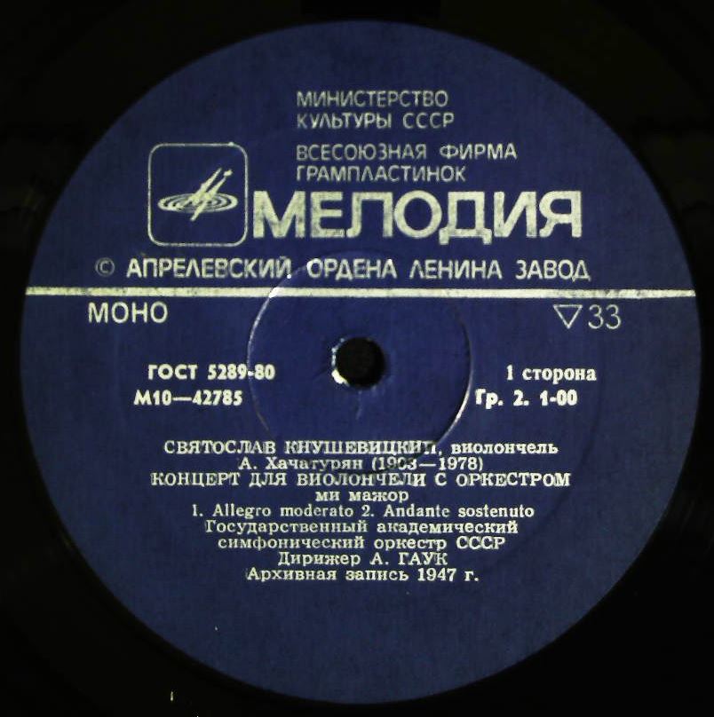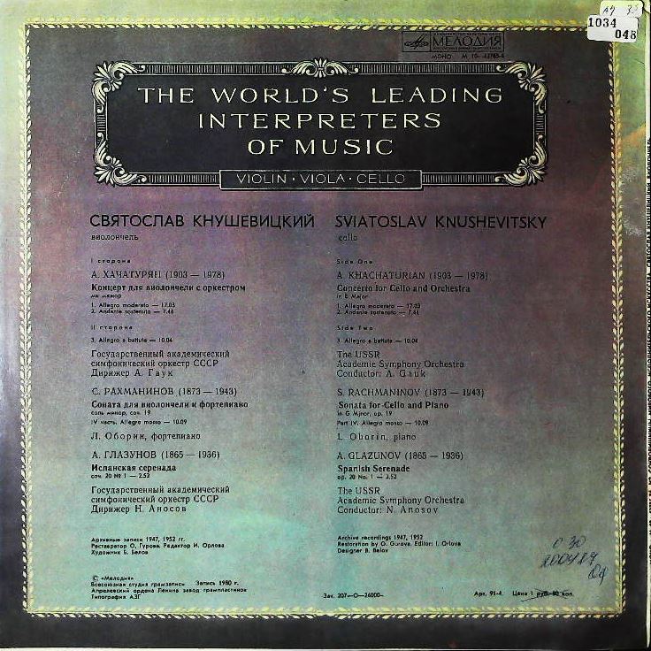 商品コード:1034-048n[MELODIYA] S.クヌシェヴィツキー(vc)/ハチャトゥリアン:Vc協奏曲, ラフマニノフ:Vcソナタ, グラズノフ:スペイン・セレナーデ